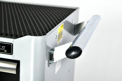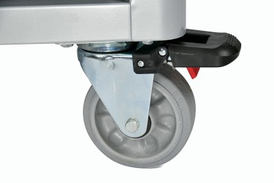 Verktygsvagn i stabil dubbelväggskonstruktion av stål. Lådorna är fullt utdragbara med kraftiga, 46 mm, kullagrade skenor. Den stora topp lådan är utrustad med dubbla skenor.