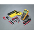 Kan mäta lik- och växelspänning (max. 600 V) och jordningsmotstånd (max. 20 kO). Utrustad med True RMS-mätning för mätning av t.ex. fyrkants- och trekantsvåg. Bakgrundsbelyst display och möjlighet att låsa ett mätvärde. Säkerhetsklass: Cat. 4 (600 V). Automatisk avstängning, fjärrprob, testkablar, prober, krokodilklämmor och hölster.